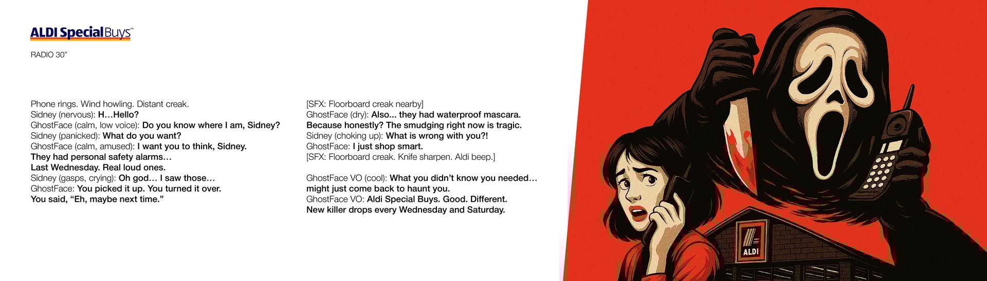 A radio spot for bargain hunters, capturing the thrill and the fear of missing out on Aldi’s most unpredictable deals.